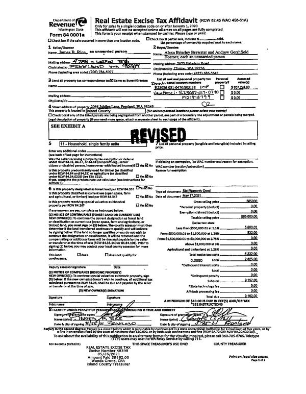 | 1 | 05/17/2021 | WD | Warranty Deed | RICE, JAMES B | BREWSTER, ALEXA BRIERLEY | | | $565,000.00 | 48398 | 4520203 |