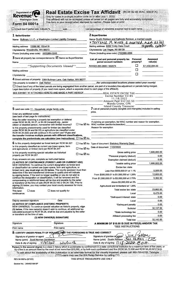 | Mailing Address: | 432 LEHMAN DR CAMANO ISLAND, WA 98282 | % Ownership: | 100.0000000000% |