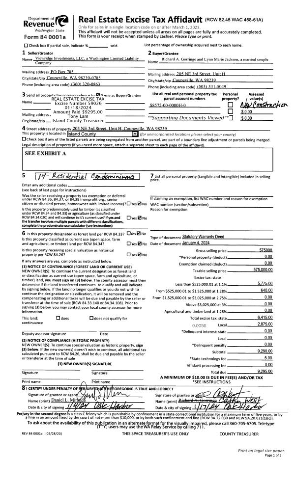 | 1 | 01/04/2024 | WD | Warranty Deed | VIEWRIDGE INVESTMENTS, LLC | GORRINGE, RICHARD A | | | $575,000.00 | 59026 | 4568634 |