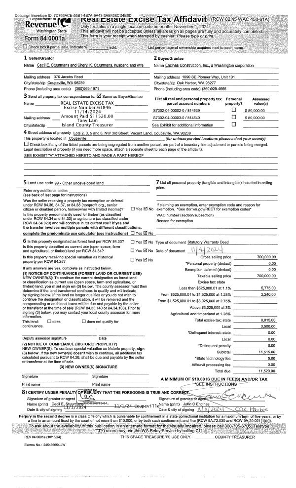 | 3 | 11/04/2024 | WD | Warranty Deed | STUURMANS, CECIL & CHERYL | ENCINAS CONSTRUCTION INC | | | $700,000.00 | 61846 | 4579445 |