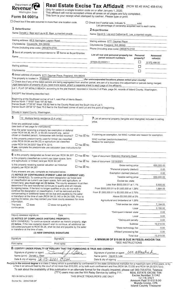 | Mailing Address: | 1420 SILVER SPRINGS WAY STANWOOD, WA 98292-8110 | % Ownership: | 100.0000000000% |
