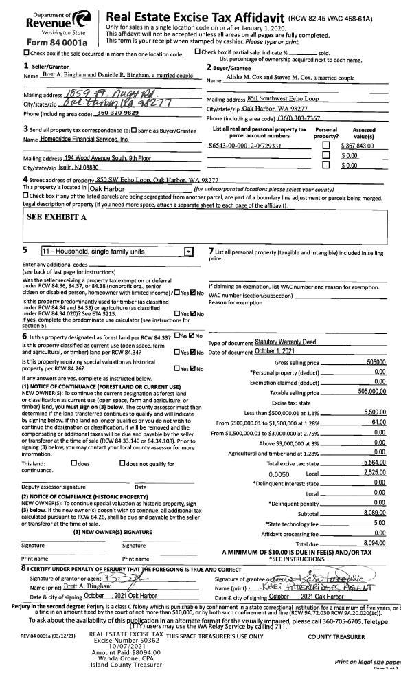 | 1 | 05/02/2019 | WD | Warranty Deed | GOODWIN CO TRUSTEE, DAVID C | STATE OF WASHINGTON PARKS | | | $165,000.00 | 38542 | 4463539 |