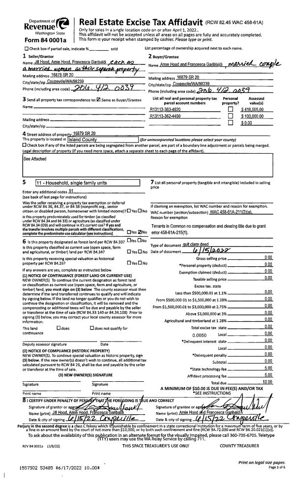 | 1 | 06/15/2022 | QCD | Quit Claim Deed | HOOD, JILL MASON | HOOD, AMIE | | | $0.00 | 53485 | 4546786 |