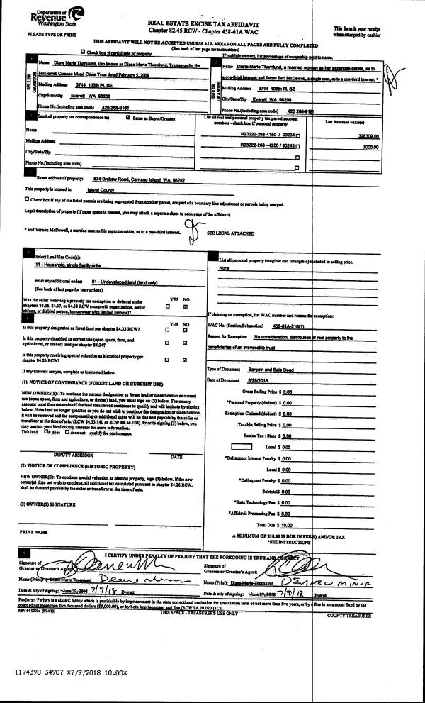 | 1 | 08/09/2018 | WD | Warranty Deed | THORNLUND, DIANA MARIE | MCDOWELL, JAMES EARL | | | $300,000.00 | 35469 | 4449954 |