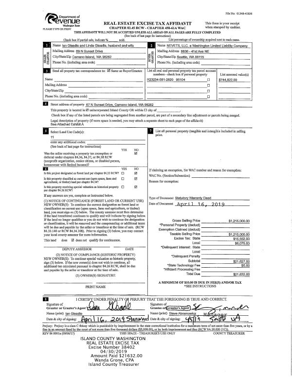 | 2 | 05/06/2019 | WD | Warranty Deed | GLEADLE, IAN | NEVETS, LLC | | | $1,215,000.00 | 38402 | 4462892 |
