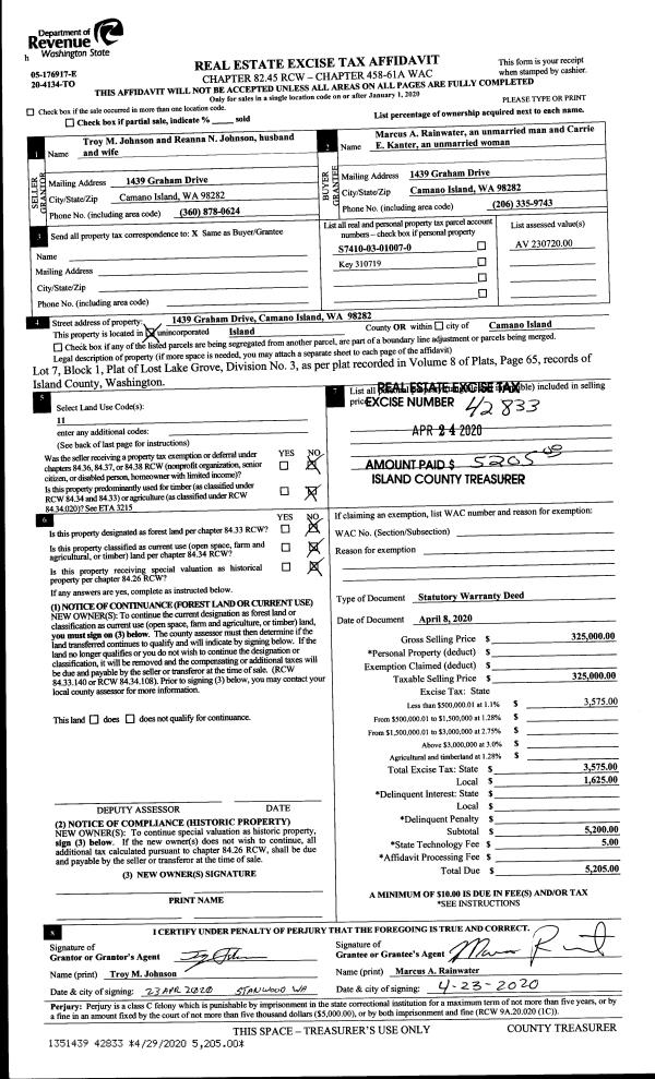 | Mailing Address: | 37 N CAMANO RIDGE RD CAMANO ISLAND, WA 98282 | % Ownership: | 100.0000000000% |