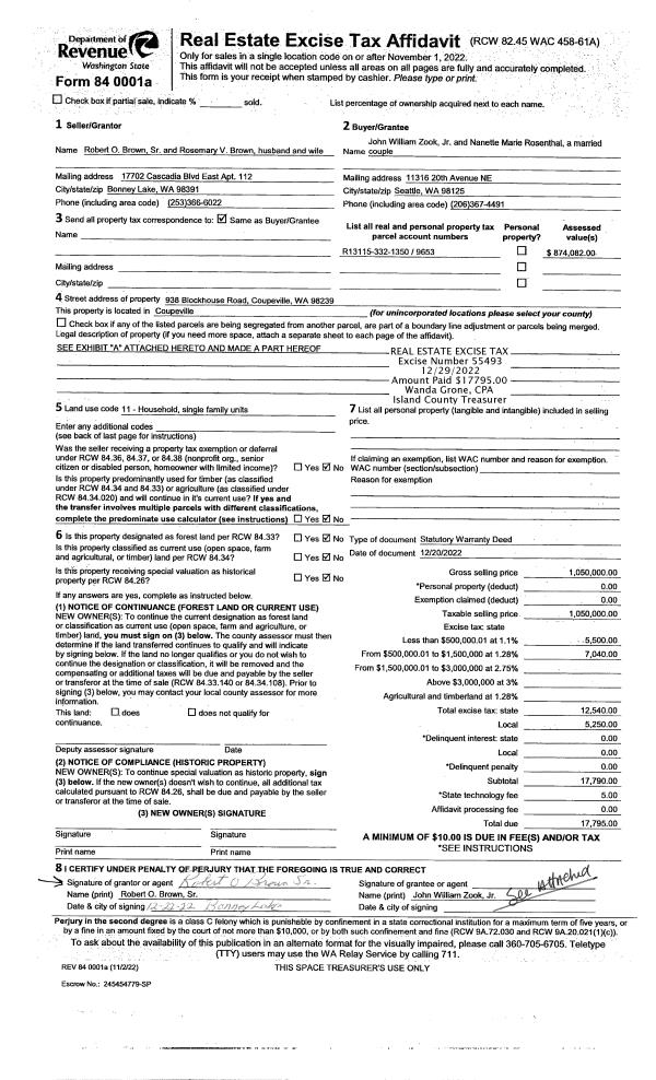 | 1 | 12/20/2022 | WD | Warranty Deed | BROWN, ROBERT O | ZOOK JR, JOHN W. | | | $1,050,000.00 | 55493 | 4555214 |