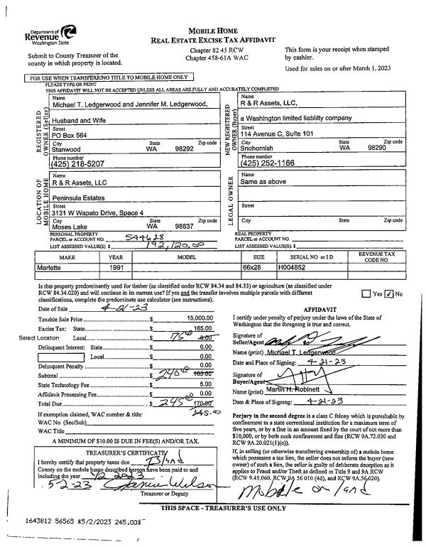 | Mailing Address: | CAROL LEA FOLTZ 269 E TROXELL RD OAK HARBOR, WA 98277-9634 | % Ownership: | 100.0000000000% |
