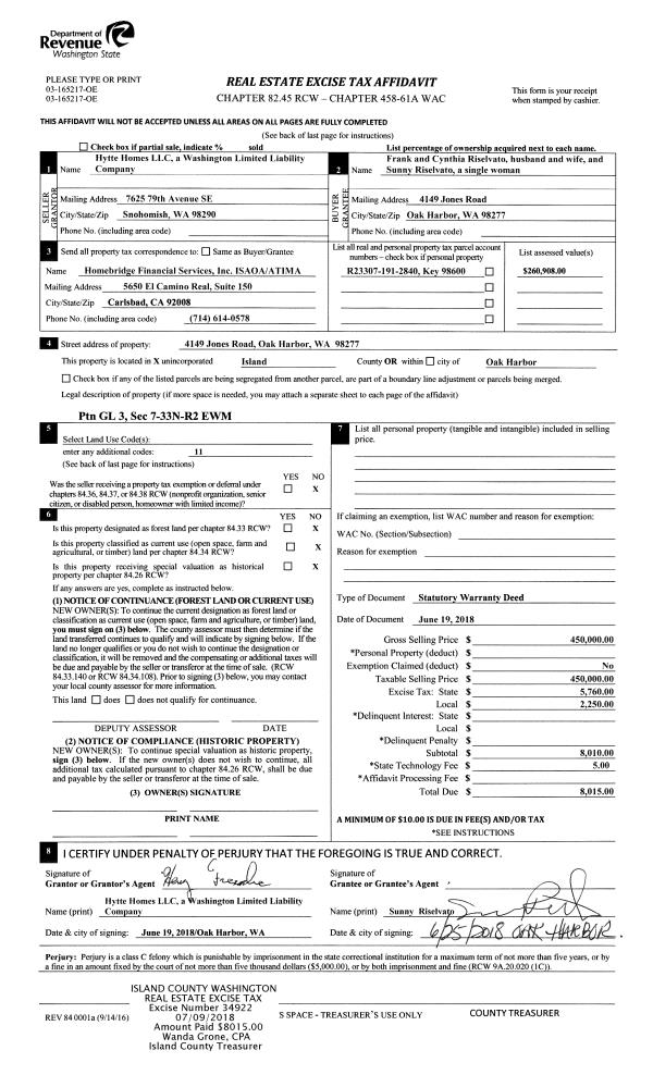 | 1 | 06/19/2018 | WD | Warranty Deed | HYTTE HOMES LLC | RISELVATO, FRANK | | | $450,000.00 | 34922 | 4447643 |