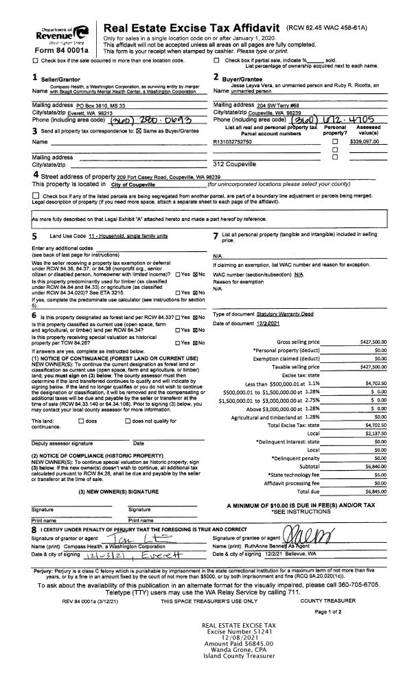 | Mailing Address: | 861 SE REGATTA DR #102 OAK HARBOR, WA 98277 | % Ownership: | 100.0000000000% |