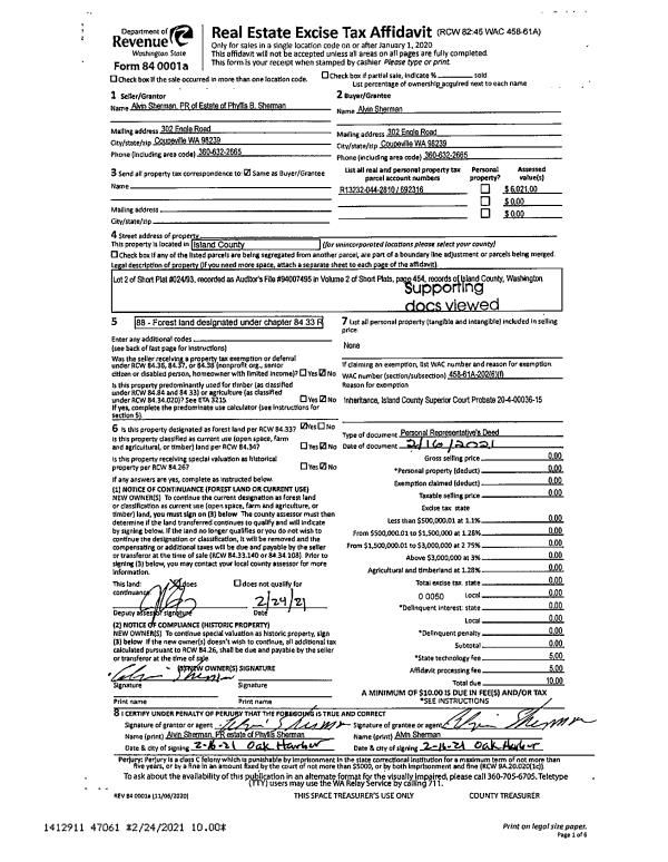 | Mailing Address: | BONNIE PAUL 323 WHISPERING PINE LN OAK HARBOR, WA 98277 | % Ownership: | 100.0000000000% |