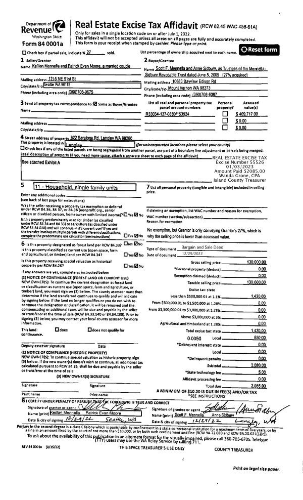 | Mailing Address: | HELENA SOFIA KOHFIELD 3369 GARFIELD CT OAK HARBOR, WA 98277 | % Ownership: | 100.0000000000% |