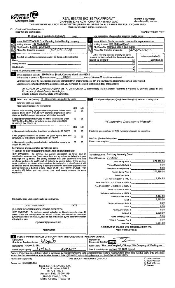 | Mailing Address: | 161 W WHIDBEY AVE APT 3 OAK HARBOR, WA 98277-5619 | % Ownership: | 100.0000000000% |