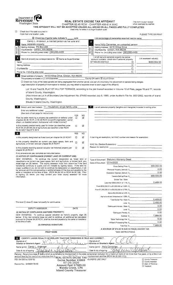 | Mailing Address: | CHRISTINA PEEBLES 265 TORRENCE LN OAK HARBOR, WA 98277 | % Ownership: | 100.0000000000% |