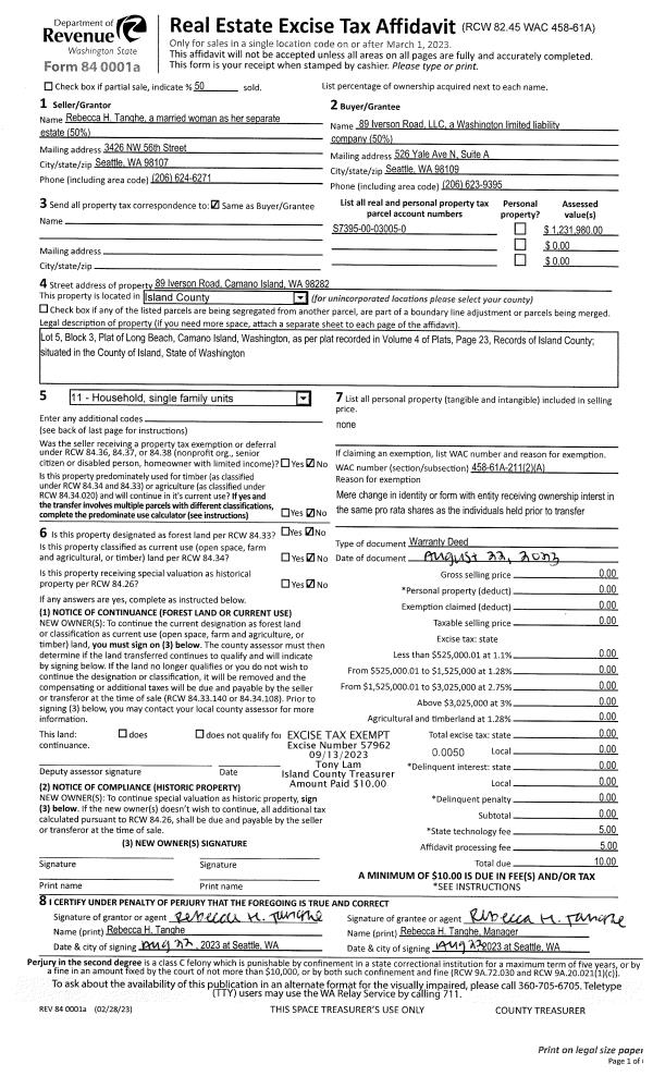 | Mailing Address: | KAREN K CONLEY 719 SPITFIRE LN OAK HARBOR, WA 98277 | % Ownership: | 100.0000000000% |