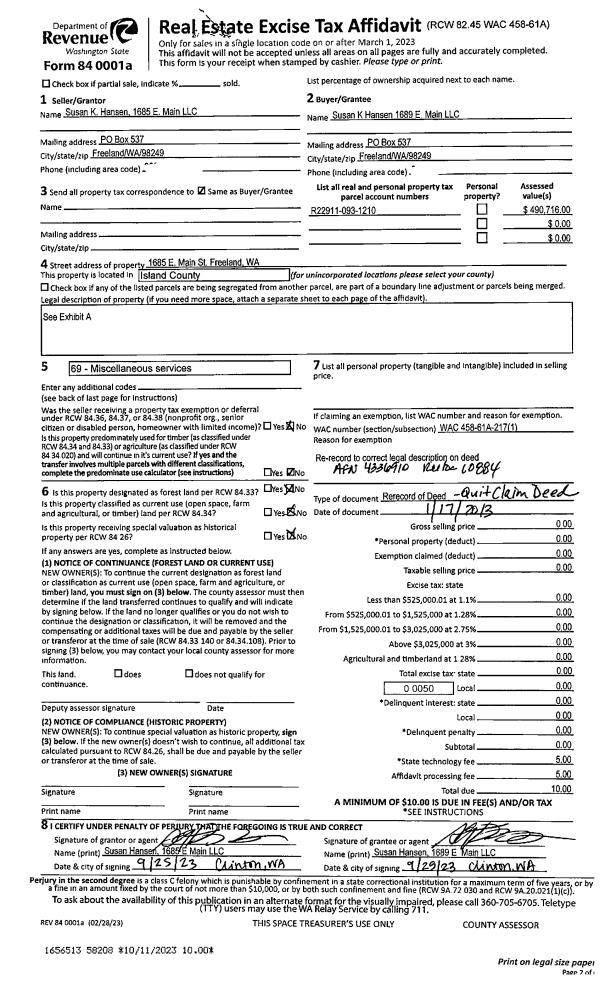 | Mailing Address: | 3114 GREEN RD OAK HARBOR, WA 98277-9095 | % Ownership: | 100.0000000000% |