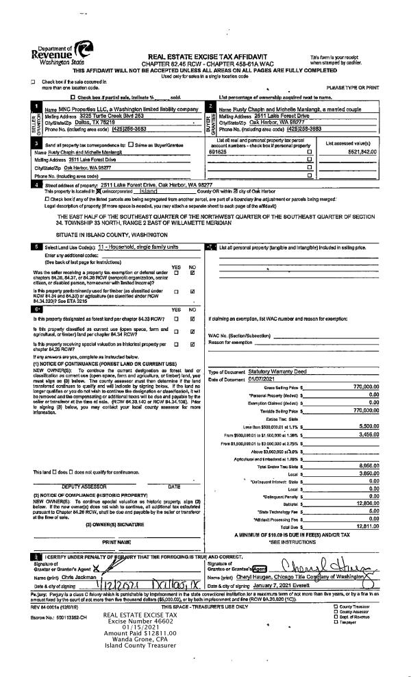 | Mailing Address: | GENI L RILEY, JTWROS 423 NW 12TH LOOP OAK HARBOR, WA 98277 | % Ownership: | 100.0000000000% |