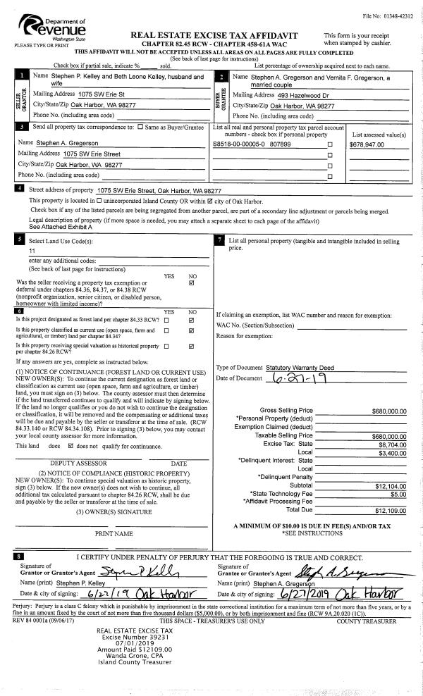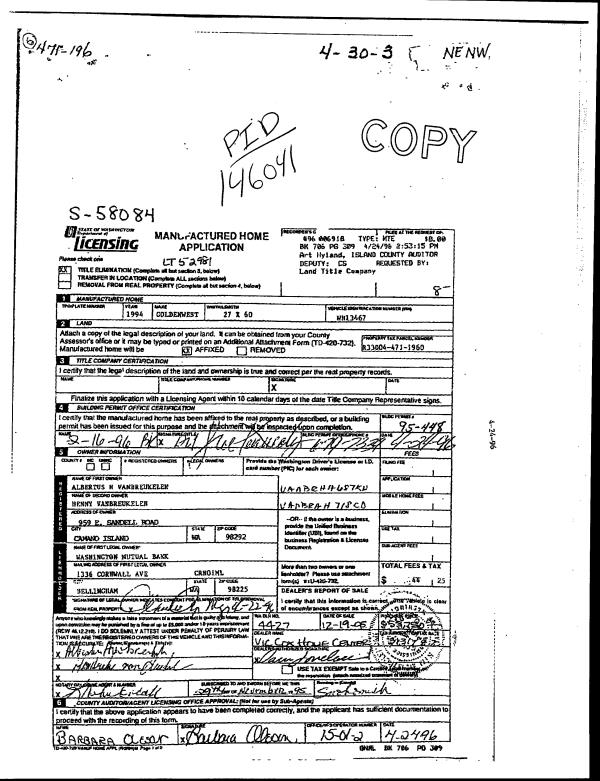 | Mailing Address: | TERA D HARRISON 954 DOYLE LN OAK HARBOR, WA 98277 | % Ownership: | 100.0000000000% |