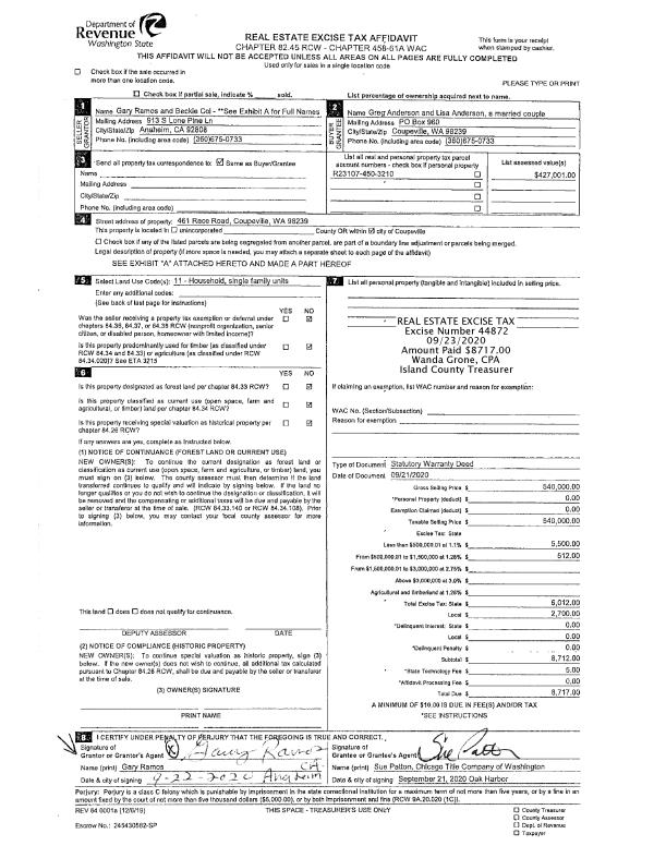 | Mailing Address: | 1589 SILVER LAKE RD OAK HARBOR, WA 98277 | % Ownership: | 100.0000000000% |
