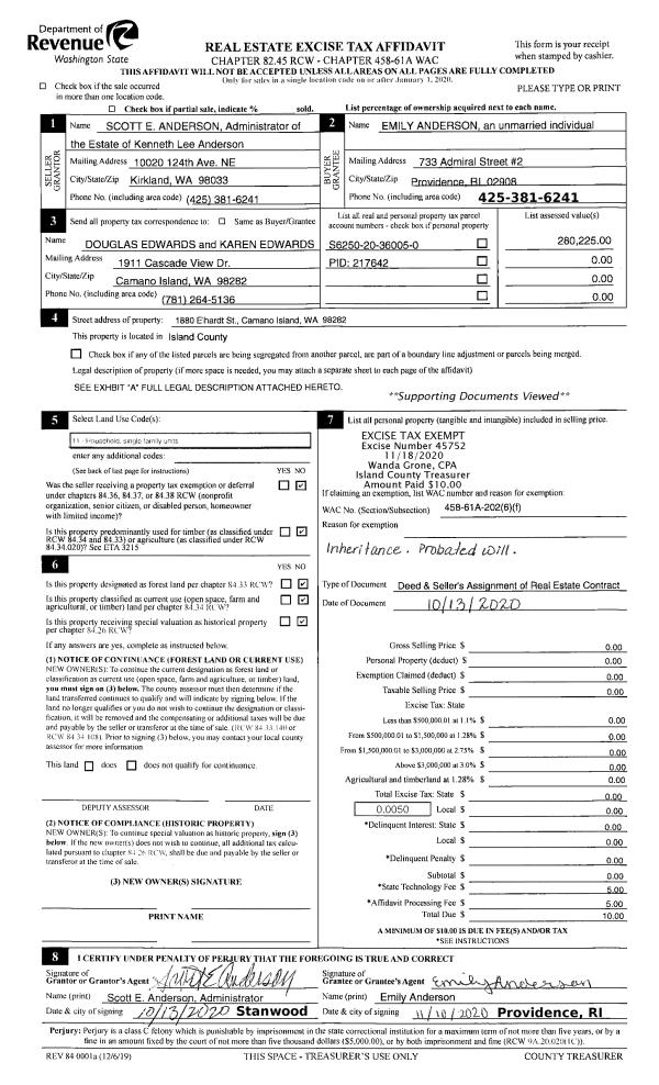 | 1 | 01/07/2020 | EZ | Easement | KERESEY, ANDREW P | PUGET SOUND ENERGY | | | $6,000.00 | 42134 | 4481531 |