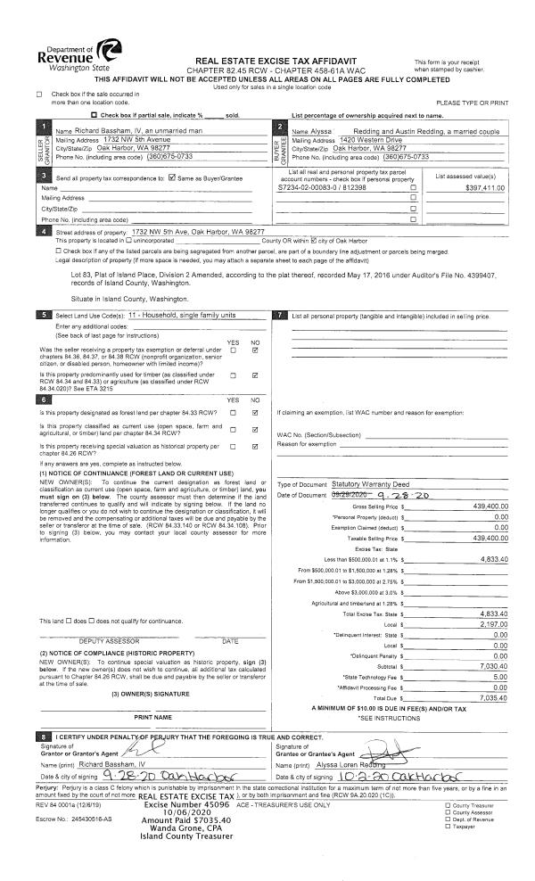 | Mailing Address: | 1589 SILVER LAKE RD OAK HARBOR, WA 98277 | % Ownership: | 100.0000000000% |