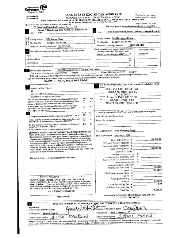 | 3 | 11/07/2019 | EZ | Easement | KASIEWNIAK, FRANK | PUGET SOUND ENERGY | | | $1,500.00 | 41285 | 4476623 |