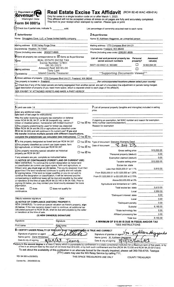| Mailing Address: | TRISTAN SIMMONS JTWORS 650 DEVRIED RD OAK HARBOR, WA 98277 | % Ownership: | 100.0000000000% |