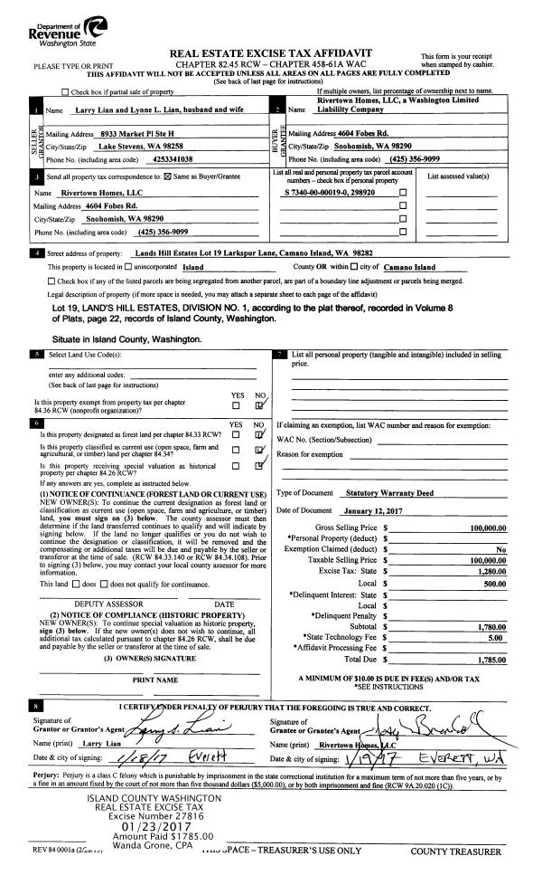 | Mailing Address: | 1115 BURMA RD OAK HARBOR, WA 98277 | % Ownership: | 100.0000000000% |