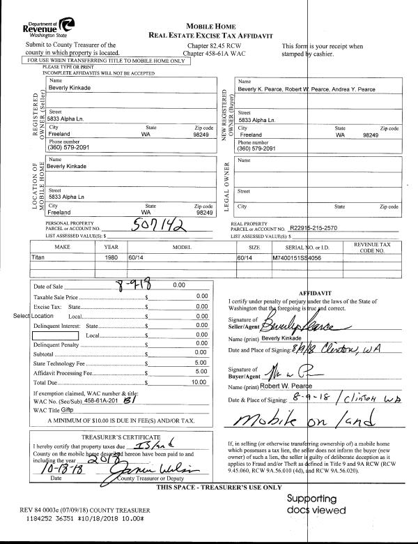 | Mailing Address: | STEPHANIE JANE VAZQUEZ 547 JEFFREY LN OAK HARBOR, WA 98277 | % Ownership: | 100.0000000000% |
