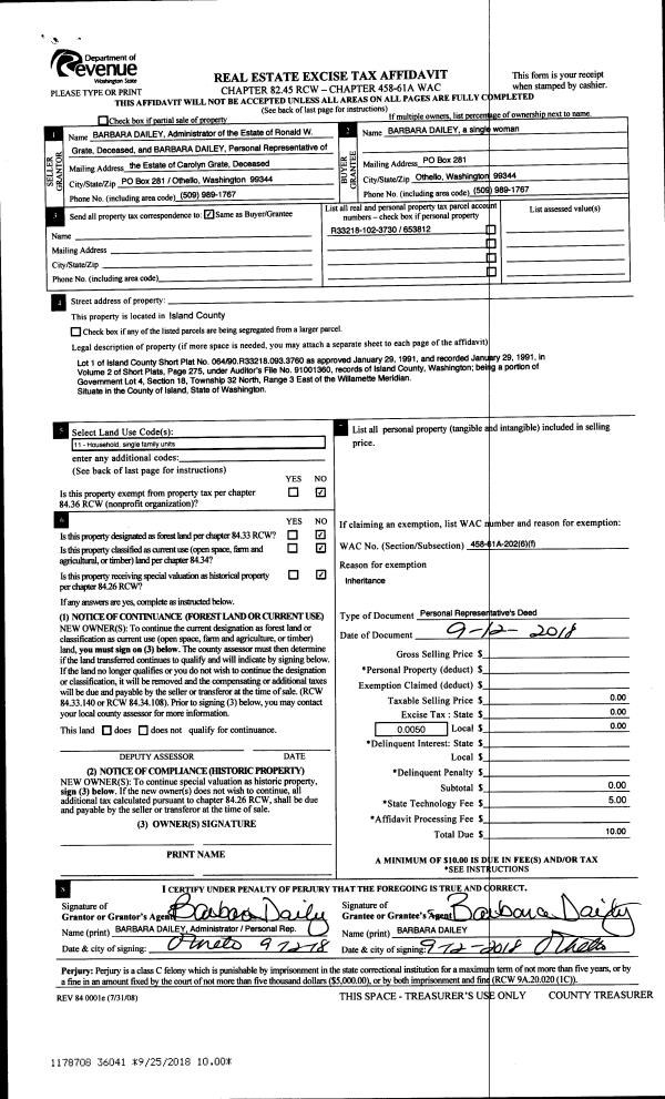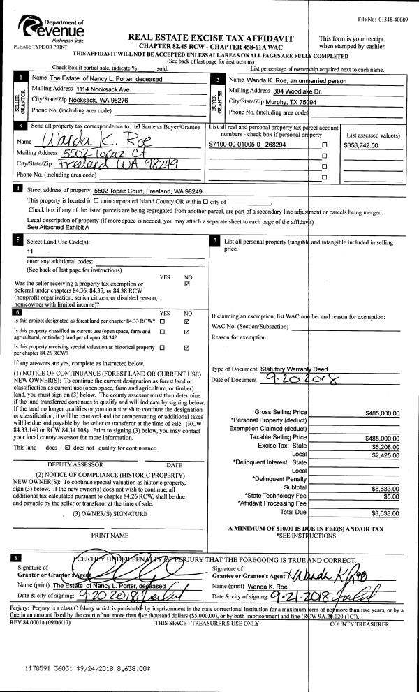 | Mailing Address: | SKYLER J MCKEE 3028 TAYLOR RD OAK HARBOR, WA 98277 | % Ownership: | 100.0000000000% |