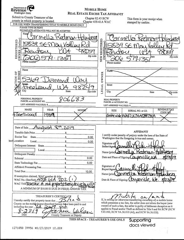 | 2 | 06/28/2019 | WD | Warranty Deed | PUFFENBARGER, H E | NORTHWEST LOGGING COMPANY, LLC | | | $300,000.00 | 39326 | 4466794 |