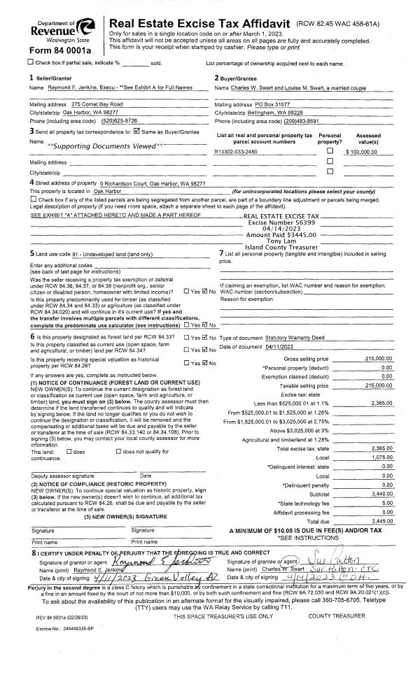 | Mailing Address: | 3122 TAYLOR RD OAK HARBOR, WA 98277-9151 | % Ownership: | 100.0000000000% |