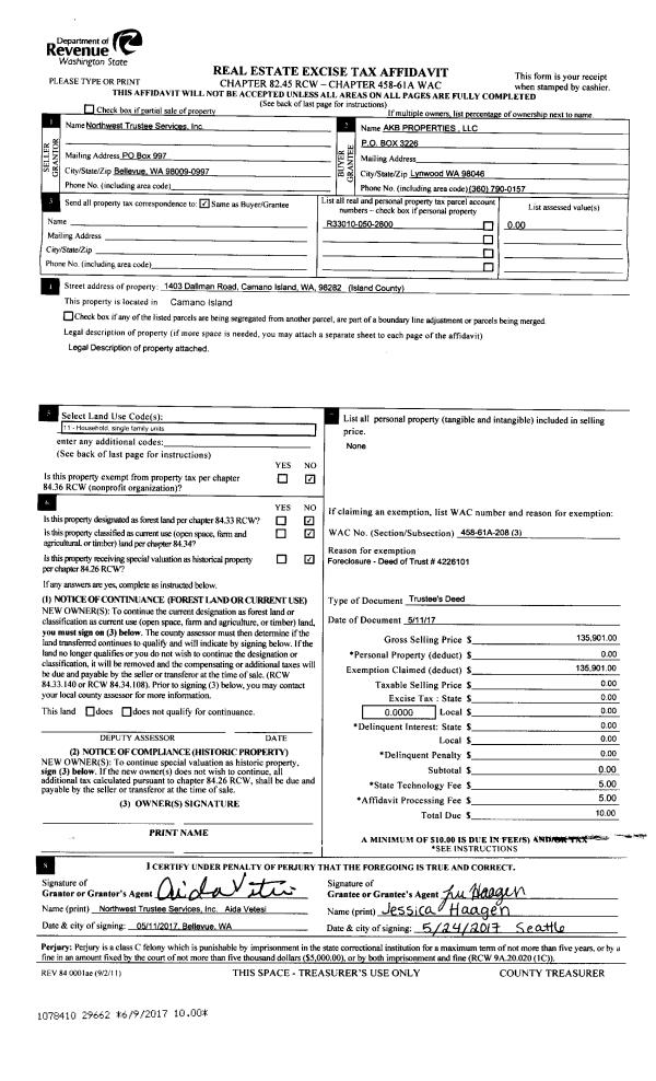 | Mailing Address: | HELEN D PARAISO 133 E CRESCENT HARBOR RD OAK HARBOR, WA 98277 | % Ownership: | 100.0000000000% |