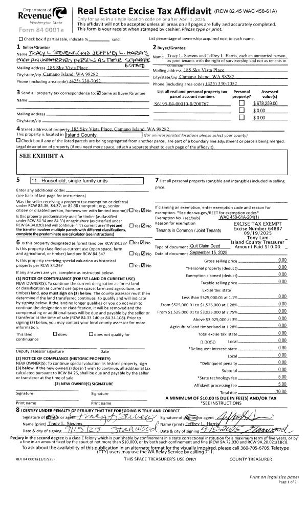 | Mailing Address: | 2741 DUSTY LN OAK HARBOR, WA 98277 | % Ownership: | 100.0000000000% |