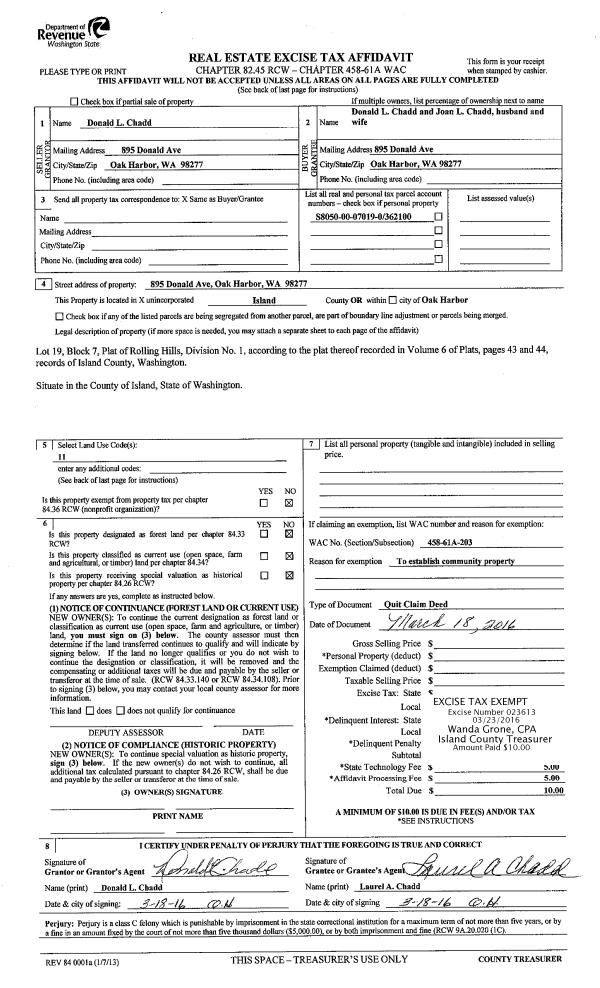 | Mailing Address: | 2758 DUSTY LN OAK HARBOR, WA 98277 | % Ownership: | 100.0000000000% |
