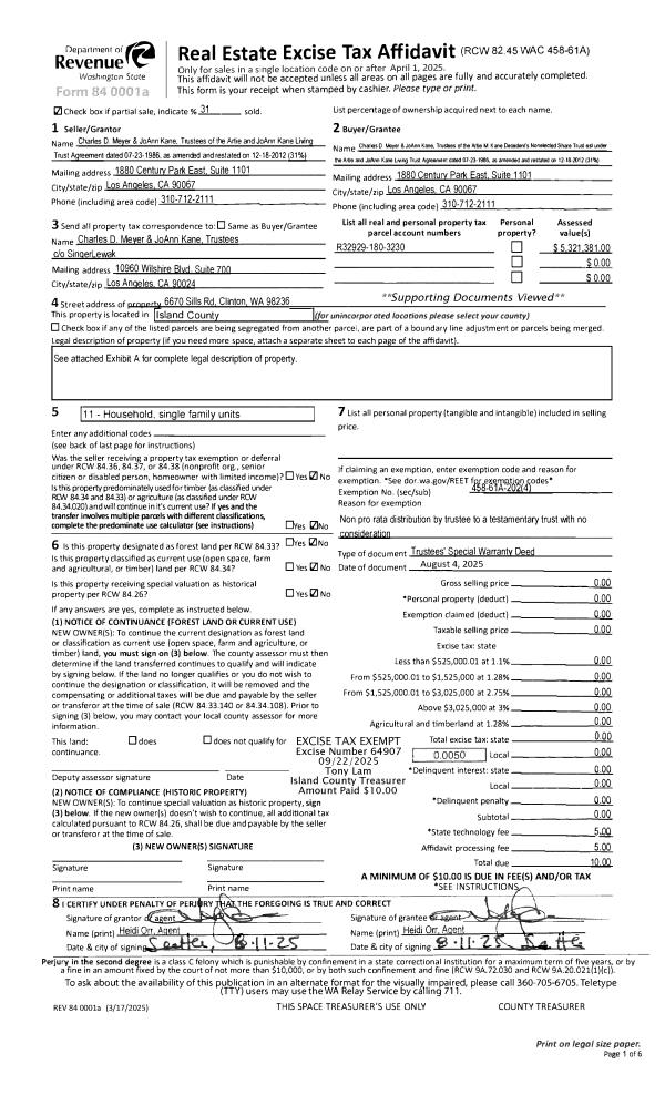 | 2 | 12/06/2022 | WD | Warranty Deed | BERG, DANIEL R & SHARON D | SERJ REAL ESTATE HOLDINGS WASHINGTON, LLC | | | $3,400,000.00 | 55338 | 4554683 |