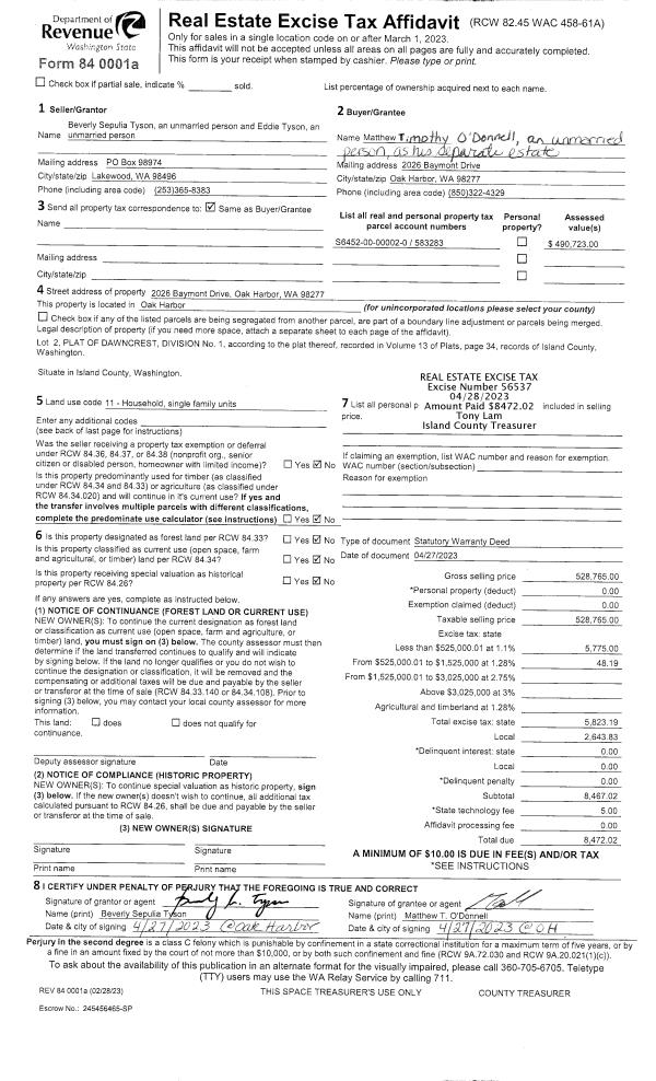 | Mailing Address: | 2165 MARINERS BEACH DR OAK HARBOR, WA 98277 | % Ownership: | 100.0000000000% |