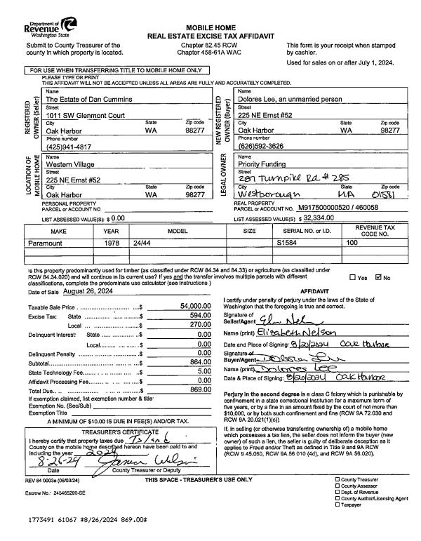 | Mailing Address: | 1395 EAGLE RIDGE RD OAK HARBOR, WA 98277 | % Ownership: | 100.0000000000% |