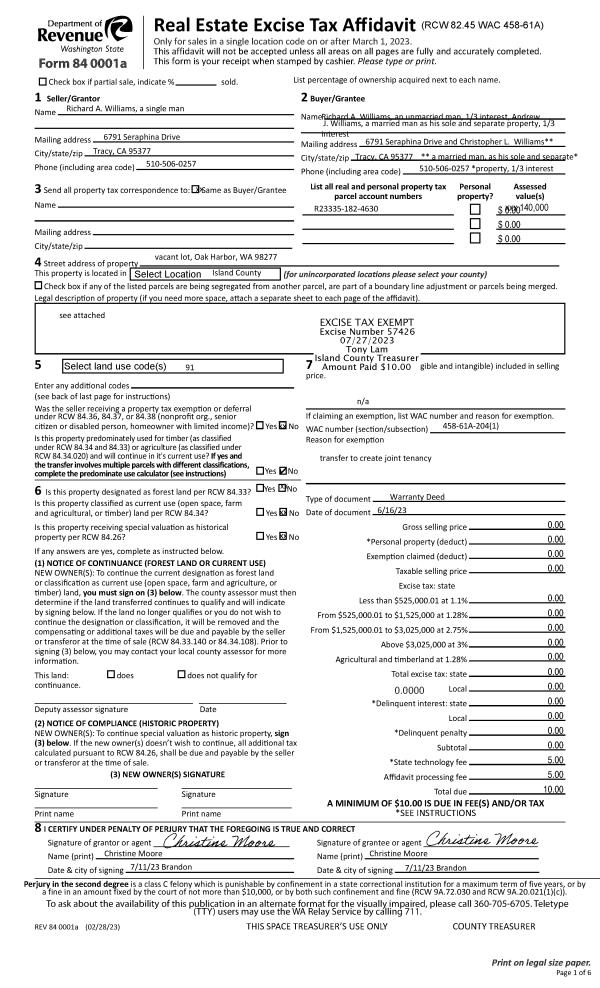 | Mailing Address: | 2540 BUSBY RD OAK HARBOR, WA 98277-8631 | % Ownership: | 100.0000000000% |