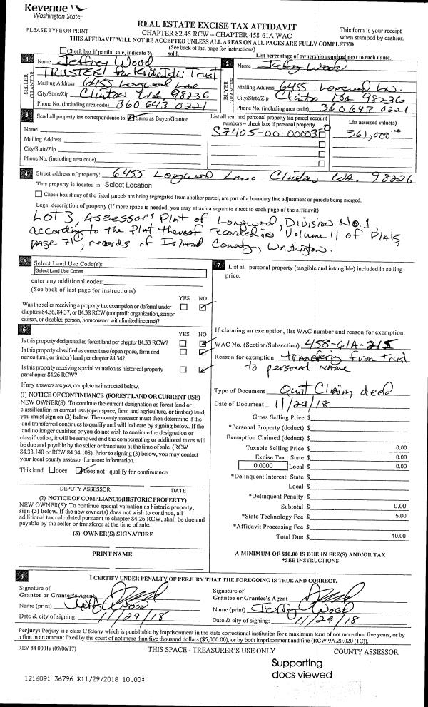 | 1 | 10/12/2018 | WD | Warranty Deed | WESTLUND TTEE, ORVILLE A | KERR, ROBERT E | | | $300,000.00 | 36292 | 4453426 |