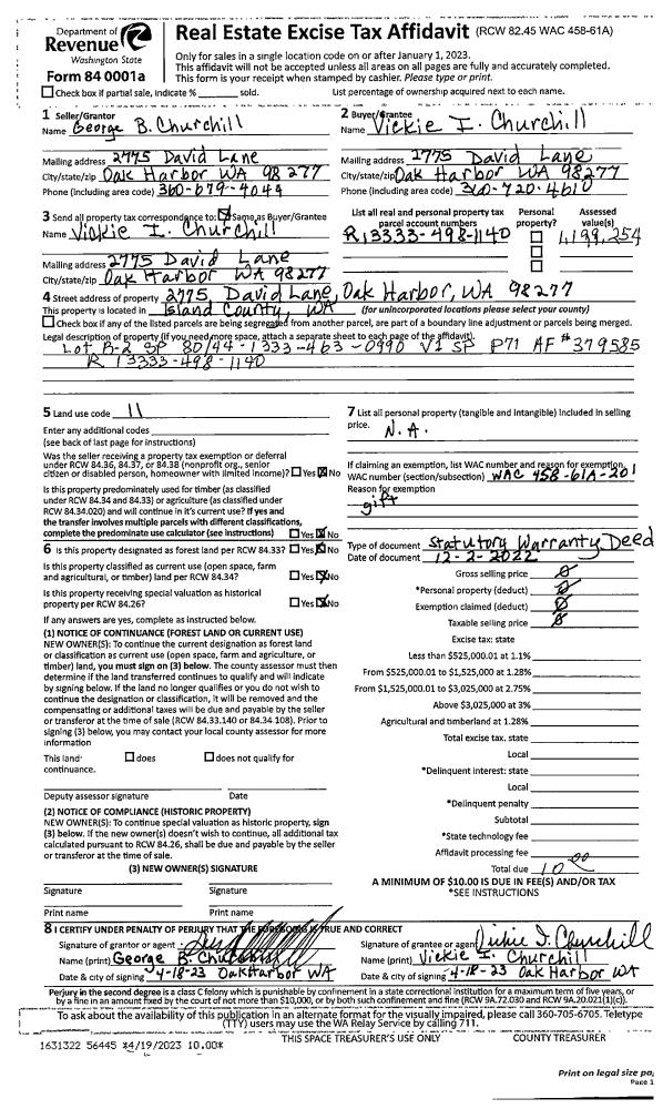 | Mailing Address: | 2612 OYSTER WAY OAK HARBOR, WA 98277 | % Ownership: | 100.0000000000% |