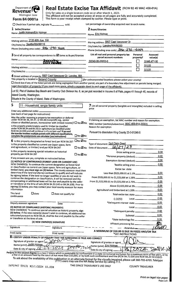 | Mailing Address: | 1235 E CRESCENT HARBOR RD OAK HARBOR, WA 98277-8652 | % Ownership: | 100.0000000000% |