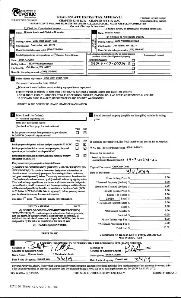 | 2 | 08/19/2019 | WD | Warranty Deed | WHITE, DONALD W | ASHWORTH, SCOTT | | | $299,000.00 | 39946 | 4469825 |