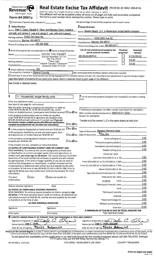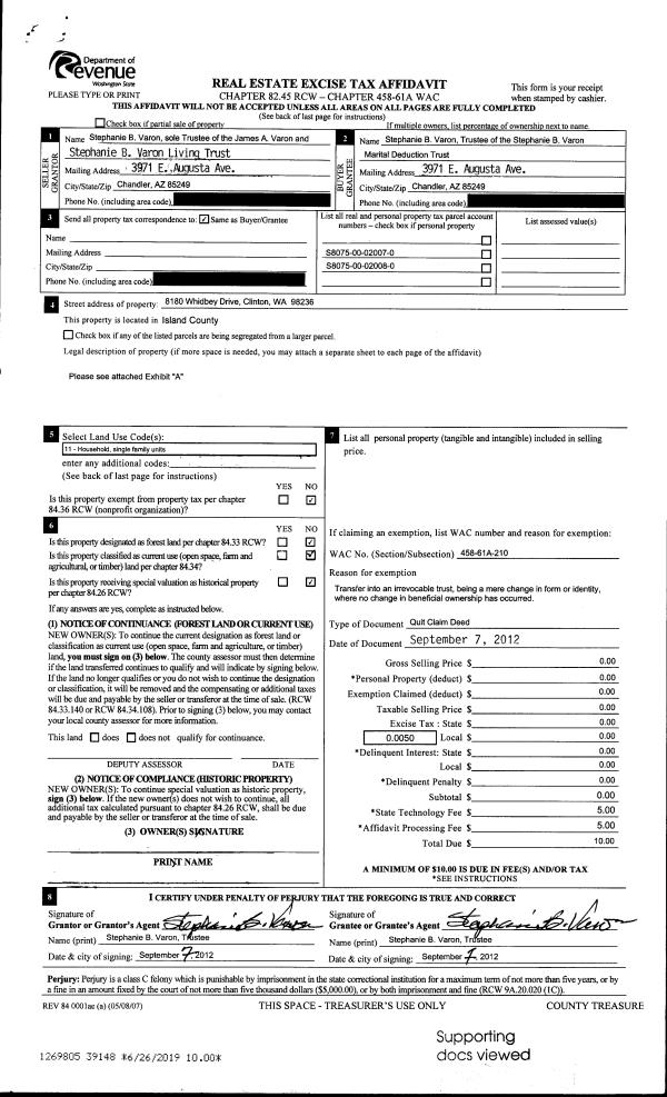 | 3 | 10/07/2020 | EZ | Easement | LUXENBERG, GRETCHEN | WHIDBEY CAMANO LAND TRUST | | | $50,300.00 | 45238 | 4499474 |