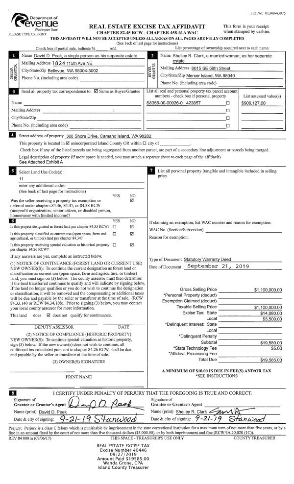 | Mailing Address: | 2525 TURNINGLEAF LN OAK HARBOR, WA 98277 | % Ownership: | 100.0000000000% |