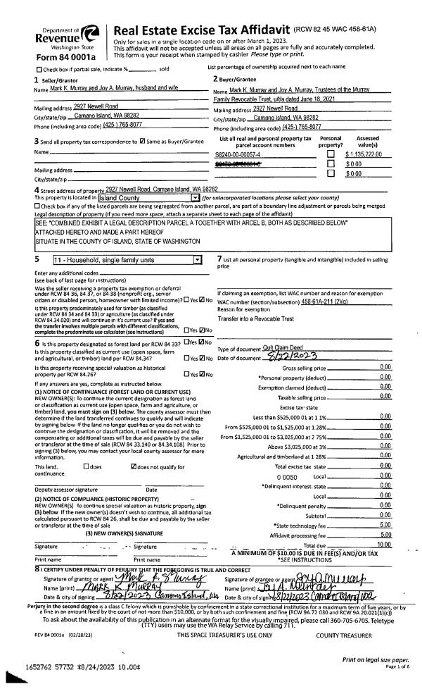 | Mailing Address: | 3033 ROBIN LN OAK HARBOR, WA 98277 | % Ownership: | 100.0000000000% |