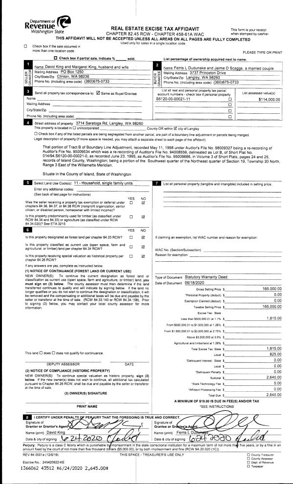 | Mailing Address: | 4988 JONES RD OAK HARBOR, WA 98277 | % Ownership: | 100.0000000000% |