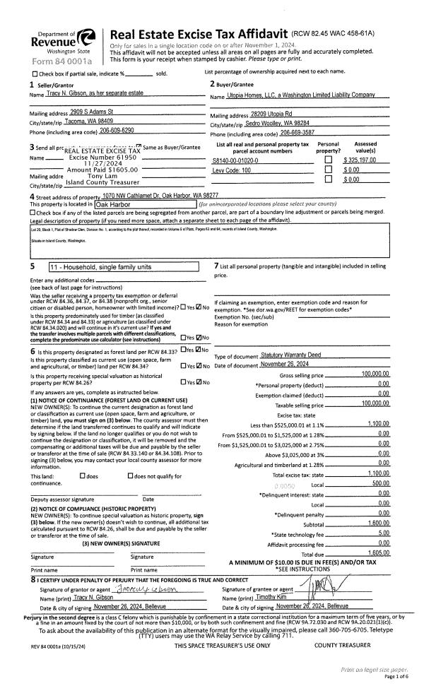 | Mailing Address: | 2715 LAUREL LN OAK HARBOR, WA 98277 | % Ownership: | 100.0000000000% |