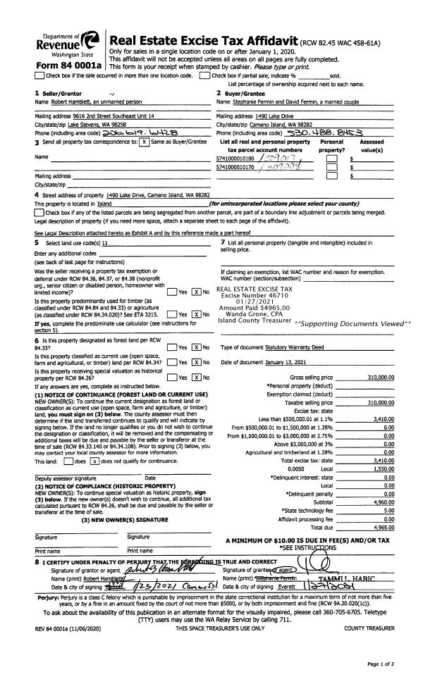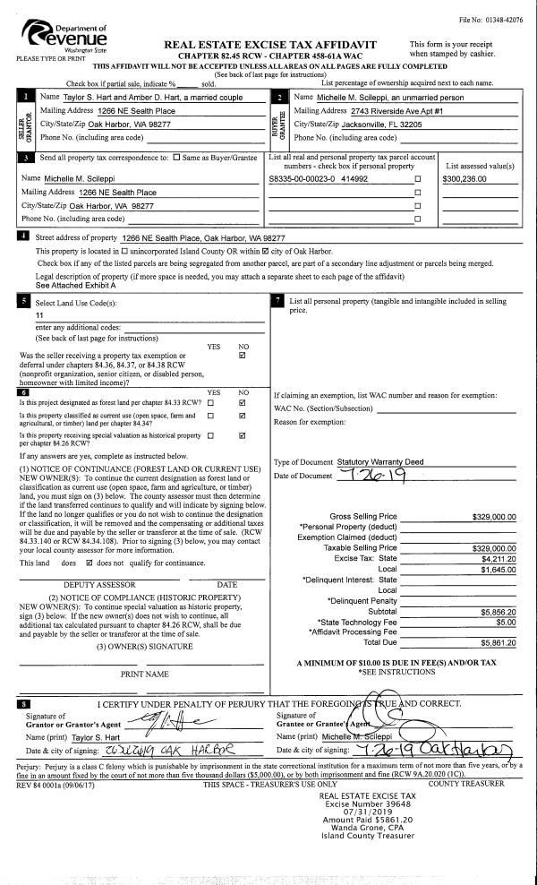 | 1 | 07/20/2019 | EZ | Easement | HELSETH, BRIAN P & DELAREE | PUGET SOUND ENERGY | | | $4,383.00 | 39905 | 4469541 |