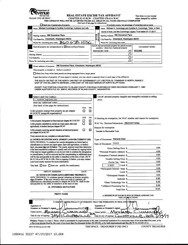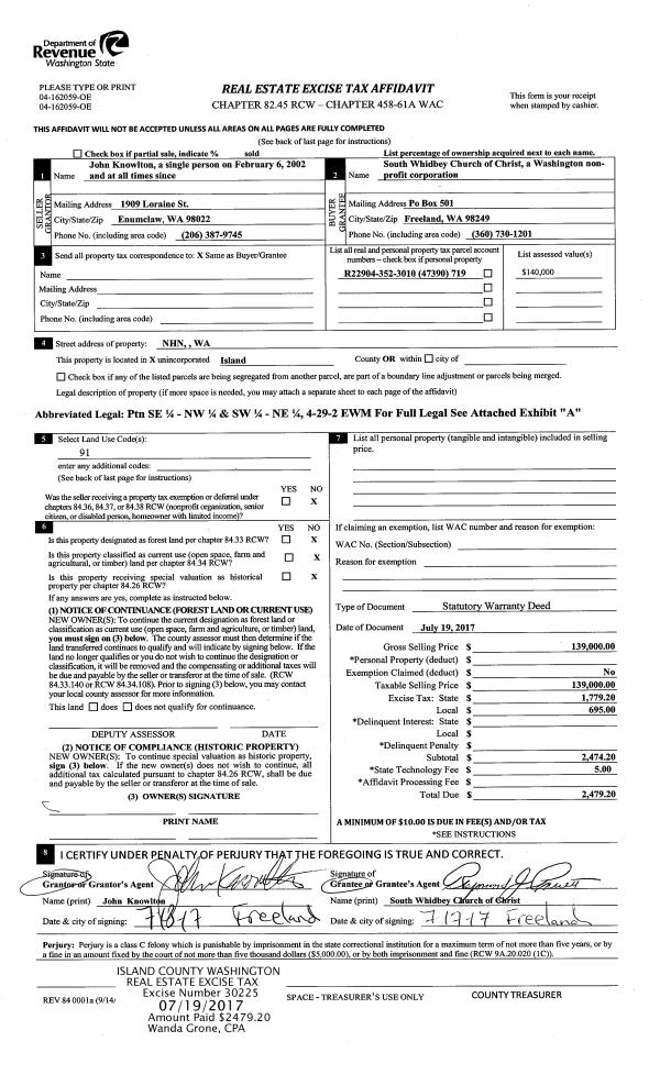 | Tax Area: | 719 - APPRAISER-S Whid Schl Dist, outside Langley, vacant & 50 acres or less | Land Use Code | 91 |